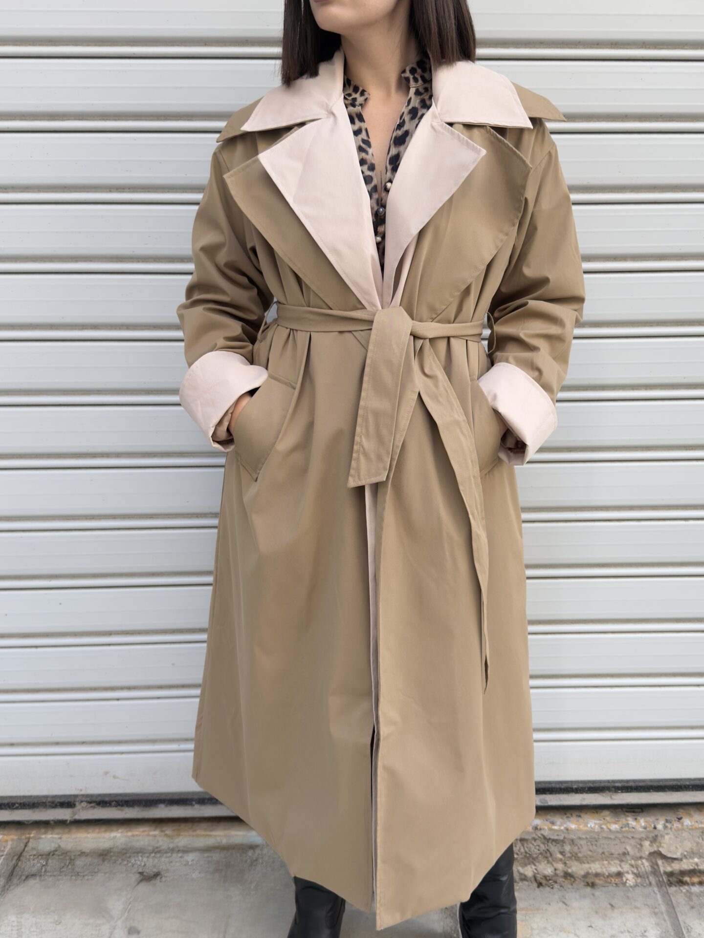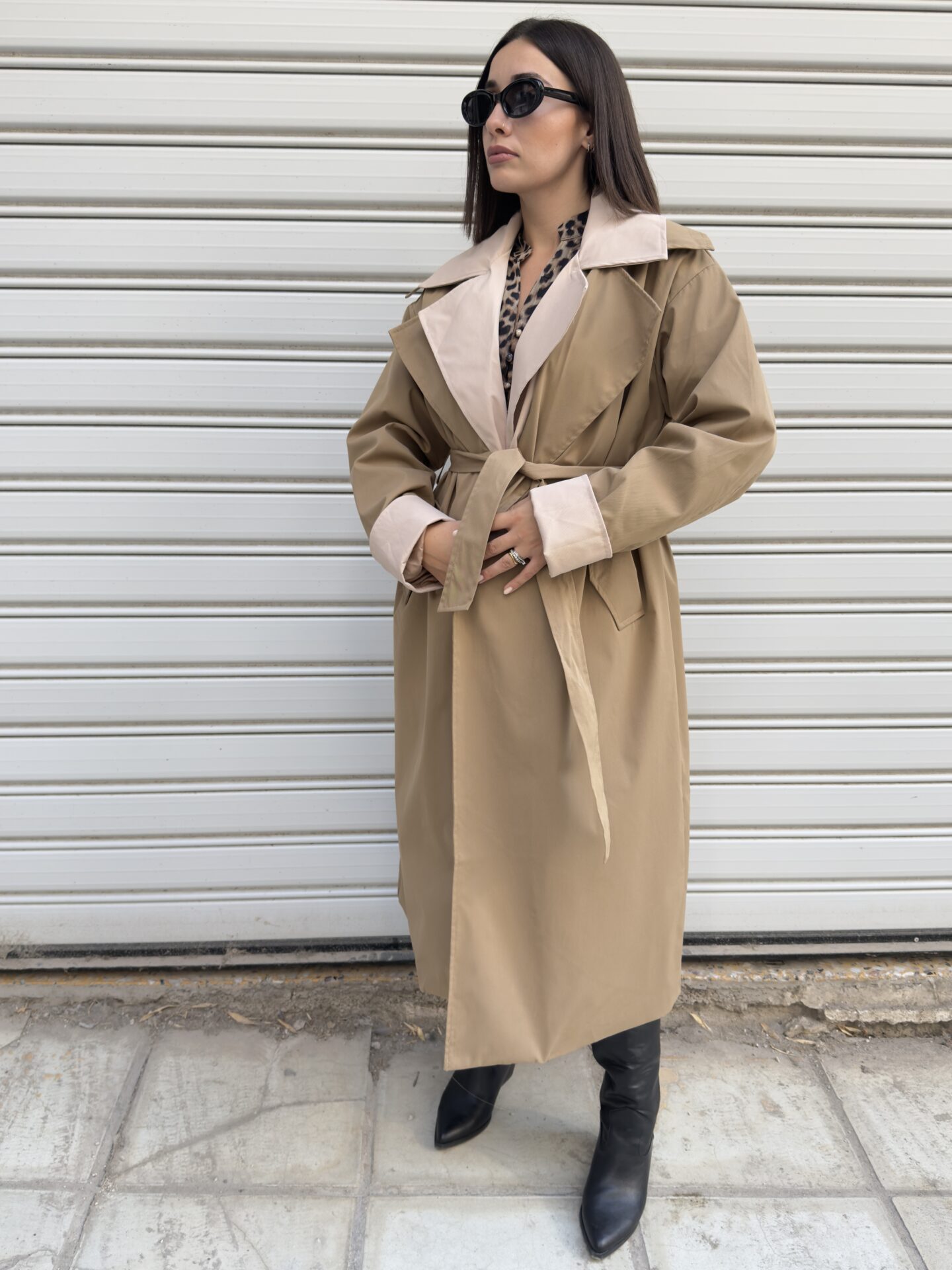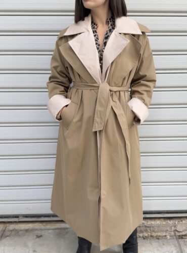 - Με διπλό γιακά ,εσωτερική επένδυση με φόδρα, αποσπώμενη ζώνη και τσέπες στα πλαϊνά