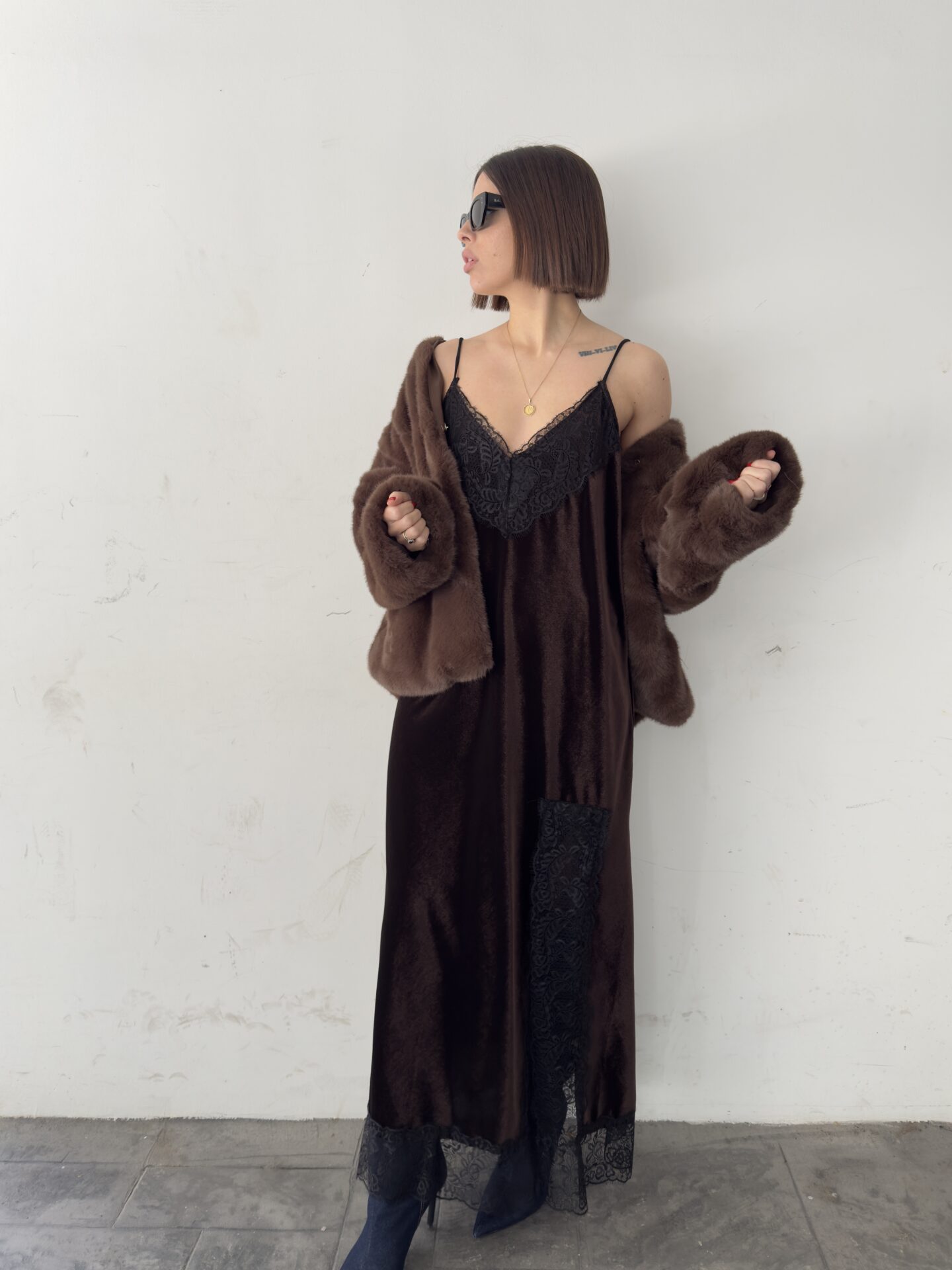 - Brown Velvet Dress