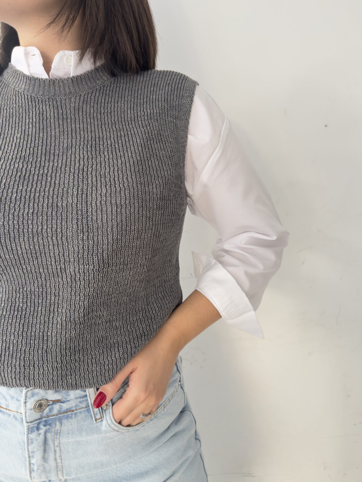 - Grey sweater vest