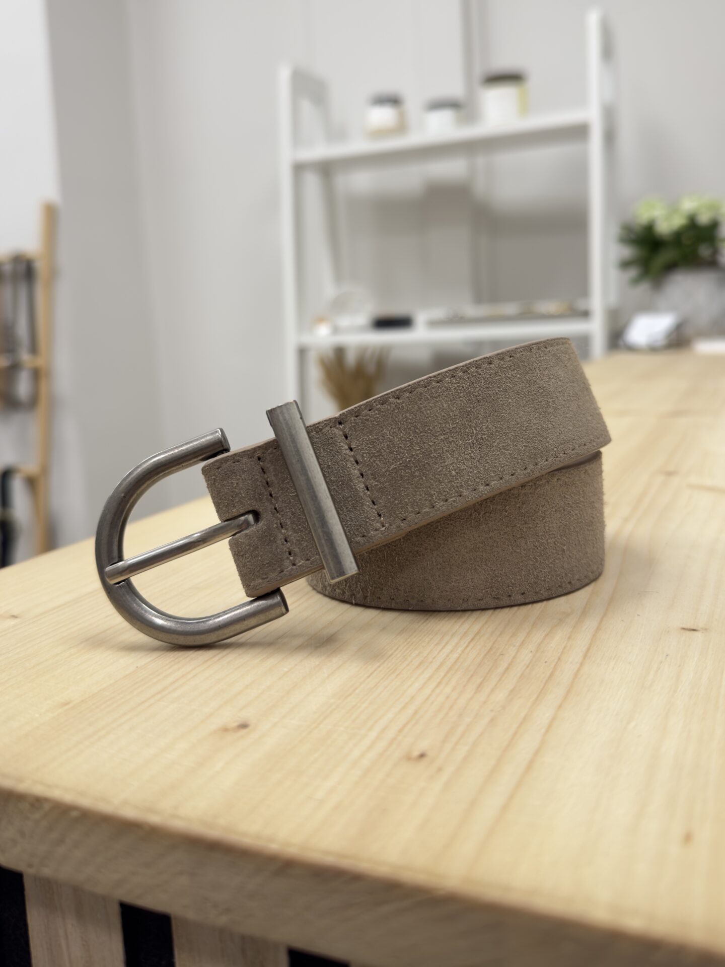- Suede Taupe Belt With Silver Details