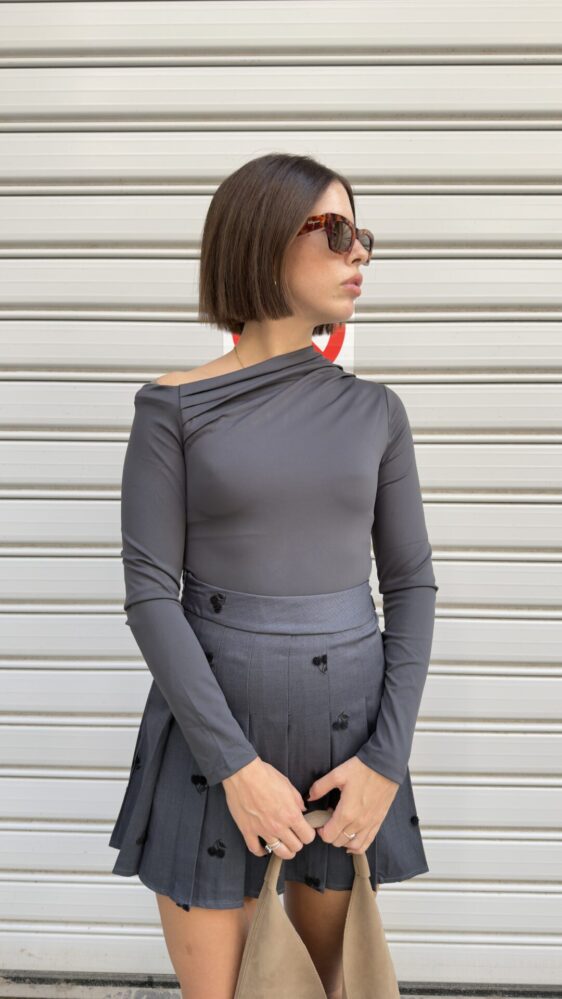 Dark Grey Skort With Cherries