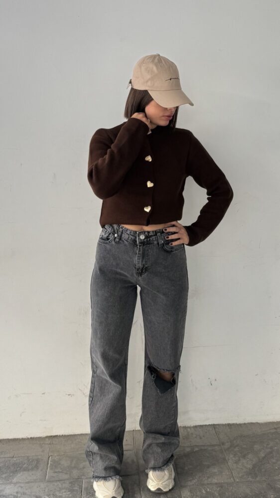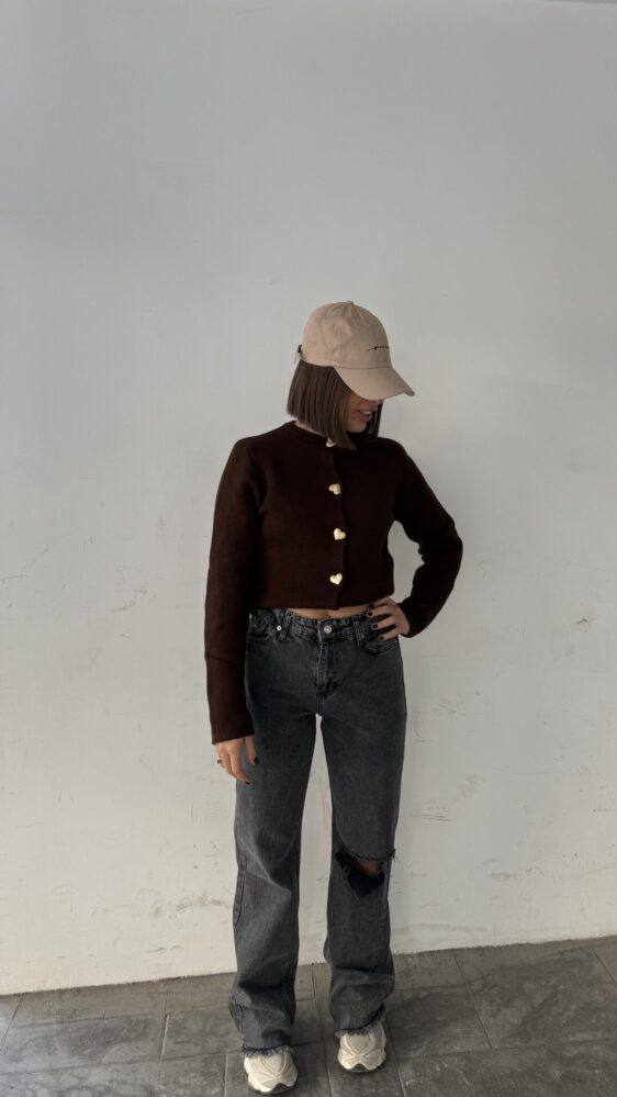 Brown Cardigan With Heart Shaped Buttons